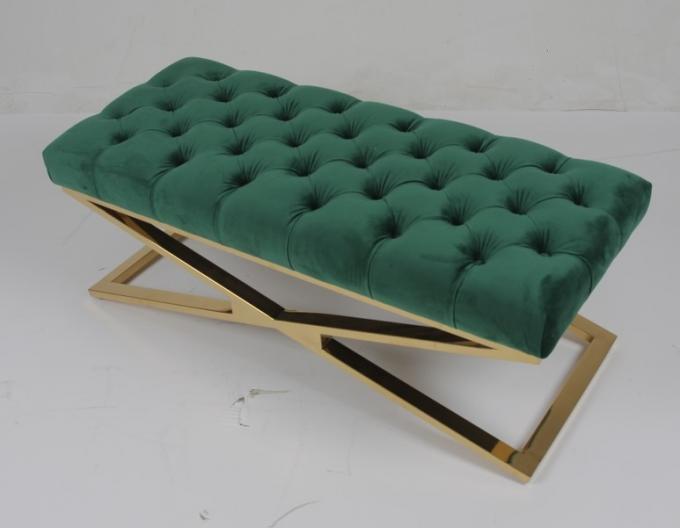 Banco dell'ottomano del velluto trapuntato bottone moderno del salone della mobilia della casa di progettazione e di lusso con la base attraversata di acciaio inossidabile di progettazione